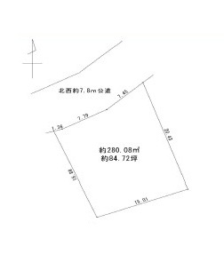 土地95坪。本下水。閑静な住宅街にゆとりの敷地で全4区画の販売です。お好きなめーけーで建築可能です。34条12号地の為、建築するには調整区域に20年以上お住まいのご親族の方が必要です。